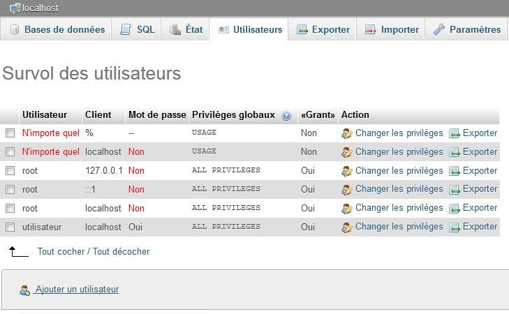 Voici la marche à suivre pour ajouter un utilisateur dans phpmyadmin: